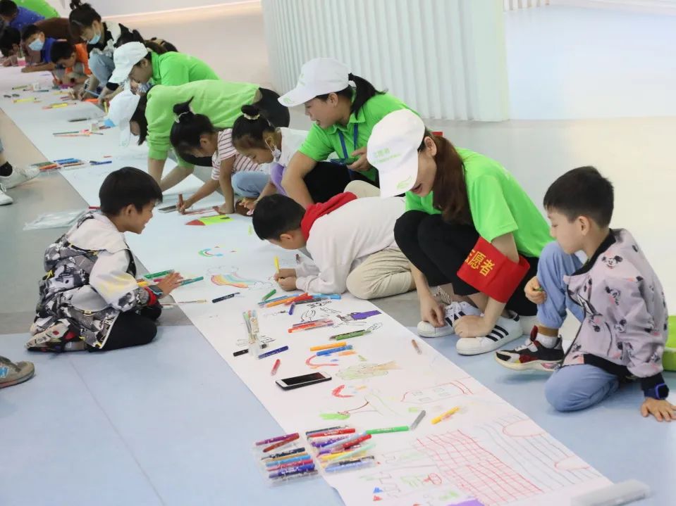 在“長(zhǎng)卷繪畫”環(huán)節(jié),志愿者、家長(zhǎng)和孩子們?cè)诳破震^內(nèi)共同繪制了一幅長(zhǎng)卷,這次繪畫與眾不同,分別以“獻(xiàn)禮祖國(guó)”、“大美鄭州”、“愛(ài)眼護(hù)眼”為主題,大家自由發(fā)揮想象力,描繪了國(guó)旗、玉兔、彩虹、航天等畫面,將自己的奇思妙想和美好祝福生動(dòng)地詮釋在畫紙上,動(dòng)手動(dòng)腦的同時(shí),也為祖國(guó)母親獻(xiàn)上了一幅美麗畫卷,孩子們創(chuàng)作熱情非常高漲,繪畫結(jié)束時(shí)還意猶未盡。