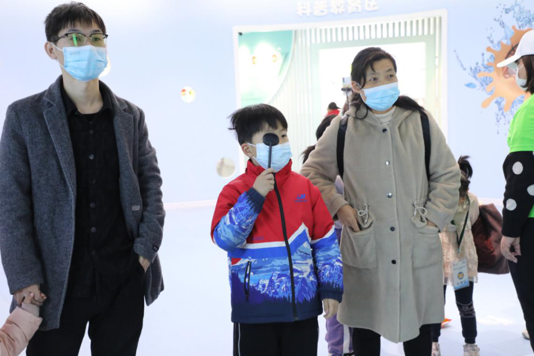 視力檢測(cè)后,孩子們?nèi)宄扇旱卦谘劢】悼破震^中自由玩耍,光學(xué)小課堂、VR體驗(yàn)、科普小短片......無一不吸引著孩子們好奇的目光,整個(gè)科普館充滿了大家銀鈴般的歡聲笑語。