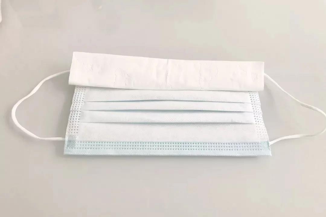 用家中抽紙或紙巾折疊成條狀,戴口罩前將紙巾條壓在口罩上方,拉起口罩繩戴好,按壓鼻梁處,再將眼鏡戴上,壓好口罩,拉平口罩~