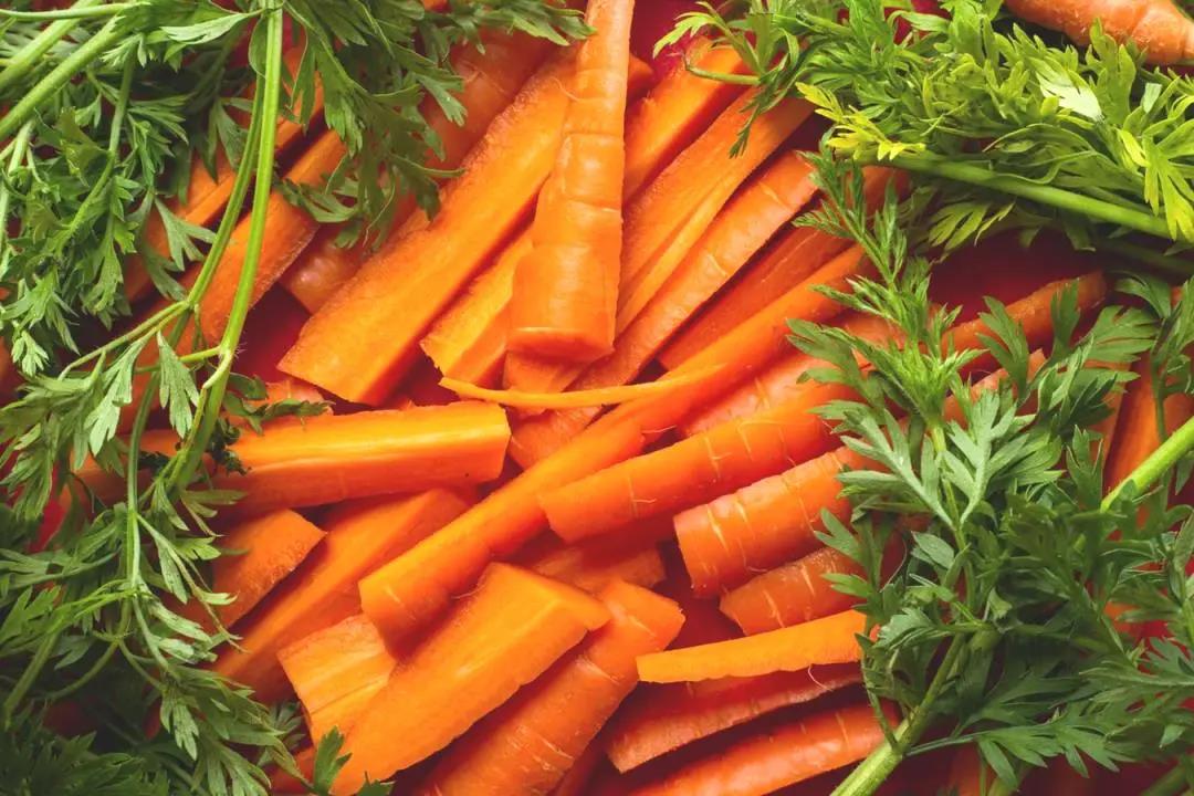 胡蘿卜含有大量胡蘿卜素,這種胡蘿卜素的分子結(jié)構(gòu)相當(dāng)于2個(gè)分子的維生素A,進(jìn)入機(jī)體后,在肝臟及小腸粘膜內(nèi)經(jīng)過酶的作用,其中50%變成維生素A,有補(bǔ)肝明目的作用。