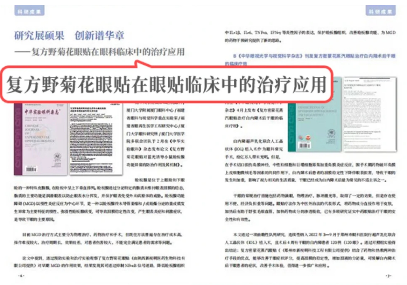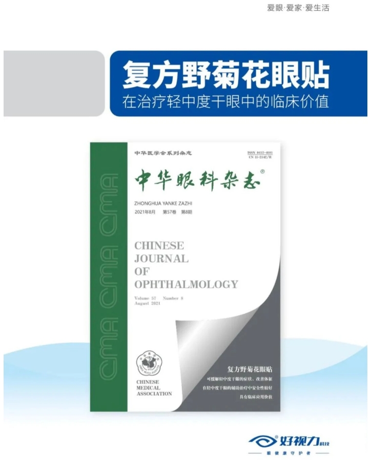 多項研究成果以文章的形式發(fā)布于各大醫(yī)學雜志。其中《復(fù)方野菊花眼貼在治療輕中度干眼的臨床價值》刊登于《中華眼科雜志》。