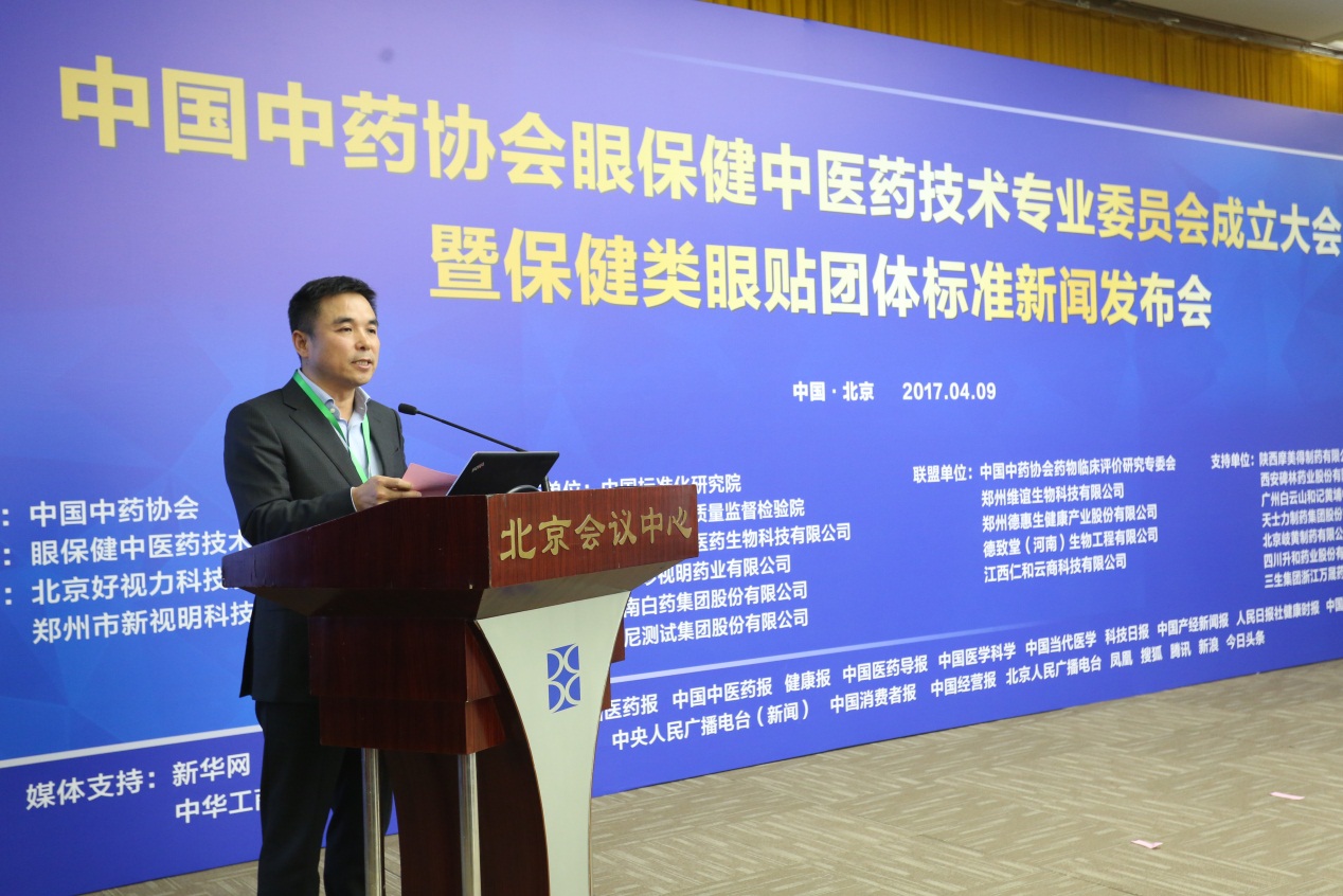 2017年4月9日,中國中藥協(xié)會眼保健中醫(yī)藥技術(shù)專業(yè)委員會成立大會暨保健類眼貼團(tuán)體標(biāo)準(zhǔn)新聞發(fā)布會在北京會議中心隆重召開。本次會議是由中國中藥協(xié)會主辦,眼保健中醫(yī)藥技術(shù)專業(yè)委員會承辦,北京好視力科技發(fā)展有限公司和鄭州市新視明科技工程有限公司協(xié)辦,中國標(biāo)準(zhǔn)化研究院、河南省產(chǎn)品質(zhì)量監(jiān)督檢驗院、陜西新視明醫(yī)藥生物科技有限公司、江西珍視明藥業(yè)有限公司、云南白藥集團(tuán)股份有限公司、譜尼測試集團(tuán)股份有限公司等十余家單位共同參與。中日友好醫(yī)院眼科副主任金明教授當(dāng)選為首屆專業(yè)委員會主任委員,近百名我國中西醫(yī)知名專家和中醫(yī)藥企業(yè)家共同見證了保健類眼貼團(tuán)體標(biāo)準(zhǔn)的頒布,攜手推進(jìn)眼健康行業(yè)的健康、有序、良性發(fā)展!