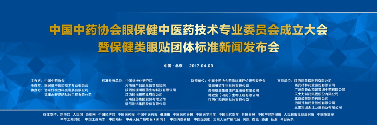 2017年4月9日,中國中藥協(xié)會眼保健中醫(yī)藥技術(shù)專業(yè)委員會成立大會暨保健類眼貼團體標準新聞發(fā)布會在北京會議中心隆重召開。