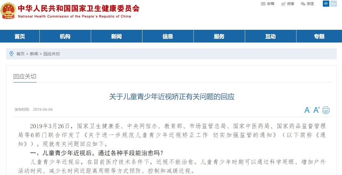 國家衛(wèi)健委6部門聯(lián)合印發(fā)了《關(guān)于進(jìn)一步規(guī)范兒童青少年近視矯正工作 切實加強(qiáng)監(jiān)管的通知》,開篇明宗——「在目前醫(yī)療技術(shù)條件下,近視不能治愈?!?span>