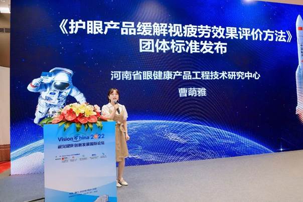 在7月23日上午的新聞發(fā)布會中,視覺健康領(lǐng)域新科研成果《護眼產(chǎn)品緩解視疲勞效果評價方法》團體標(biāo)準(zhǔn)亮相Vision China 2022新聞發(fā)布會,河南省眼健康產(chǎn)品工程技術(shù)研究中心主任曹萌雅為大家做了科研成果匯報。