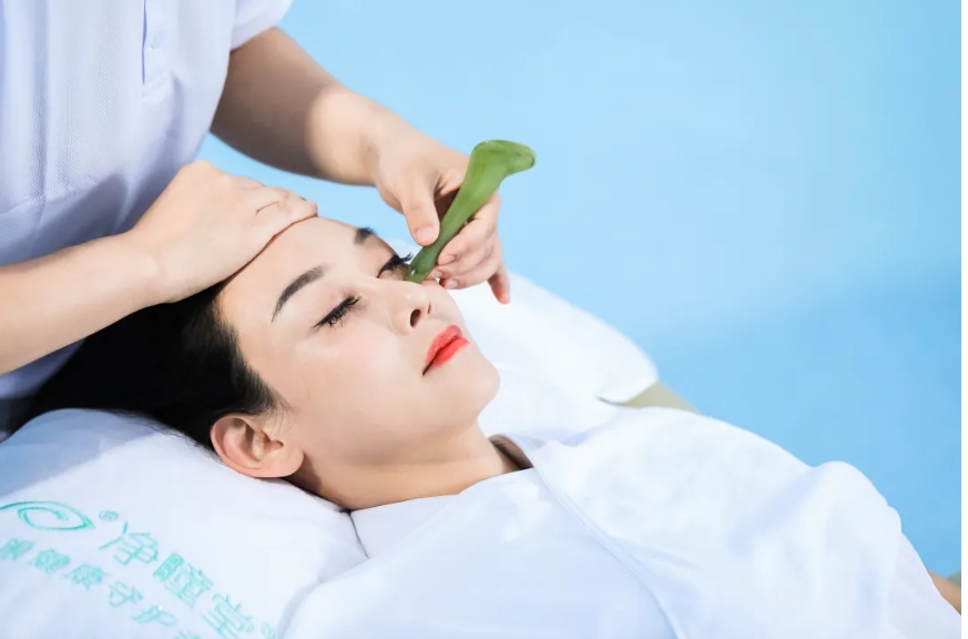使用刮痧棒將凈瞳堂牌護眼油均勻刮試在眼部,同時貼敷凈瞳堂牌 2.0 眼貼,使眼部得到充分放松。