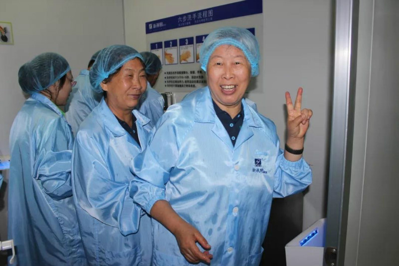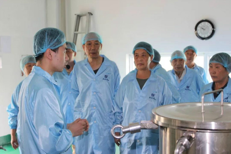 隨后,叔叔阿姨們跟隨隊伍來到了眼貼提取制劑車間,在講解員的帶領(lǐng)下認真地換好了鞋套和參觀服(叔叔阿姨們?yōu)榱塑囬g的潔凈都非常配合工作人員哦~)